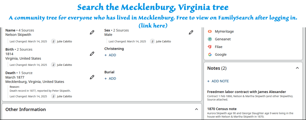 Future post: During my research of following the land where the ferry was located, I saw the names of many enslaved individuals referenced in the estates of these ferry keepers. I’m pondering ways to show and organize all these names with any relationships stated, including adding them all to the community tree on FamilySearch. More on that when I have some names ready to share.