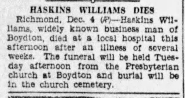 Obituary of Haskins Williams link.