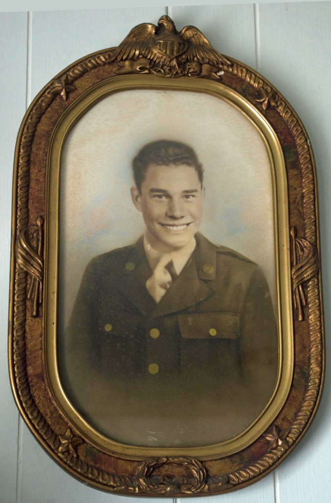 This picture of Charles Tudor was his parent’s picture. It’s still hanging up on the wall of his parent’s old house. I asked about the frame and was told that’s how the military pictures were framed, with the eagle frame and rounded glass. The rounded glass broke, but the frame and picture were untouched. New, flat glass was put into the frame, which thankfully is much easier to make a copy of the picture.