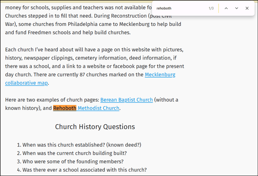 Churches were an important part of the community, and were gathering places for public meetings, education, and community events. There are about 300 churches listed in deed books before 1933. Many of the older churches are no longer standing or in operation. Their histories and records are gone. I’m trying to learn the history of churches and share that on this website.