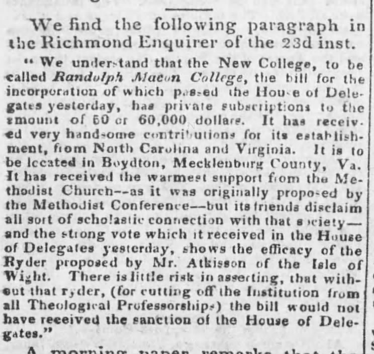 | 54. Randolph Macon College __________ Boydton Institute | area 19 | 1830s-1860s college (white) Boydton Institute until 1916 for African Americans | –Deed Book 24, pages: 194, 299, 450 –Deed Book 25, page 185 –Deed Book 26, page 217 | yes ruins | |