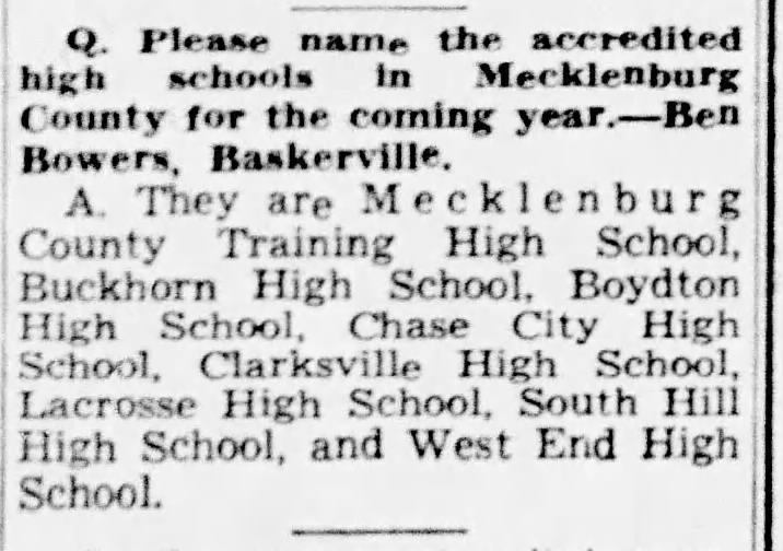 | 39. Mecklenburg County Training High School | area 5 | African American (Rosenwald) | |||