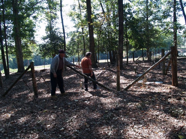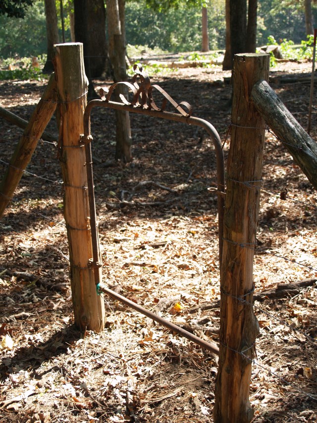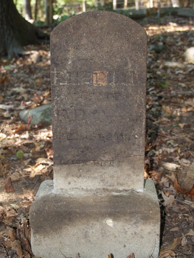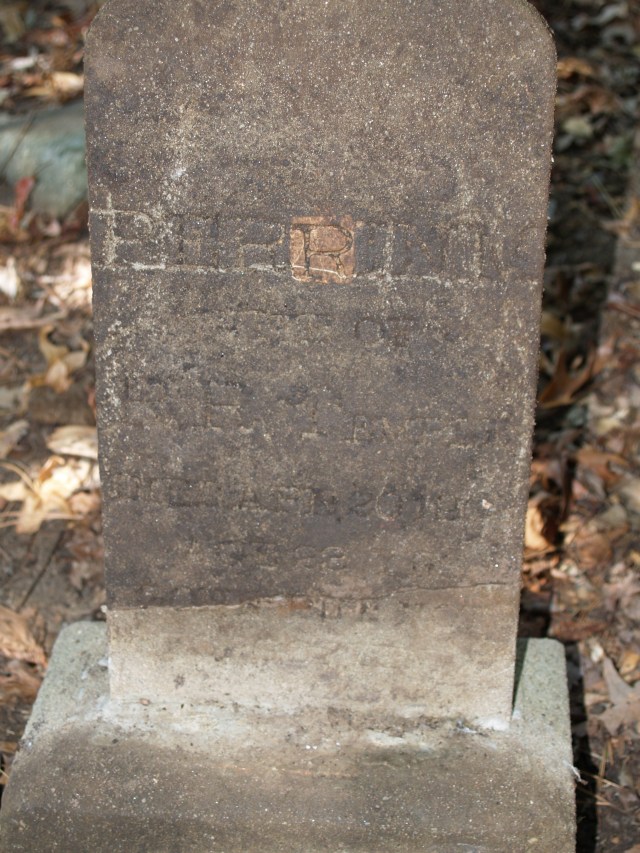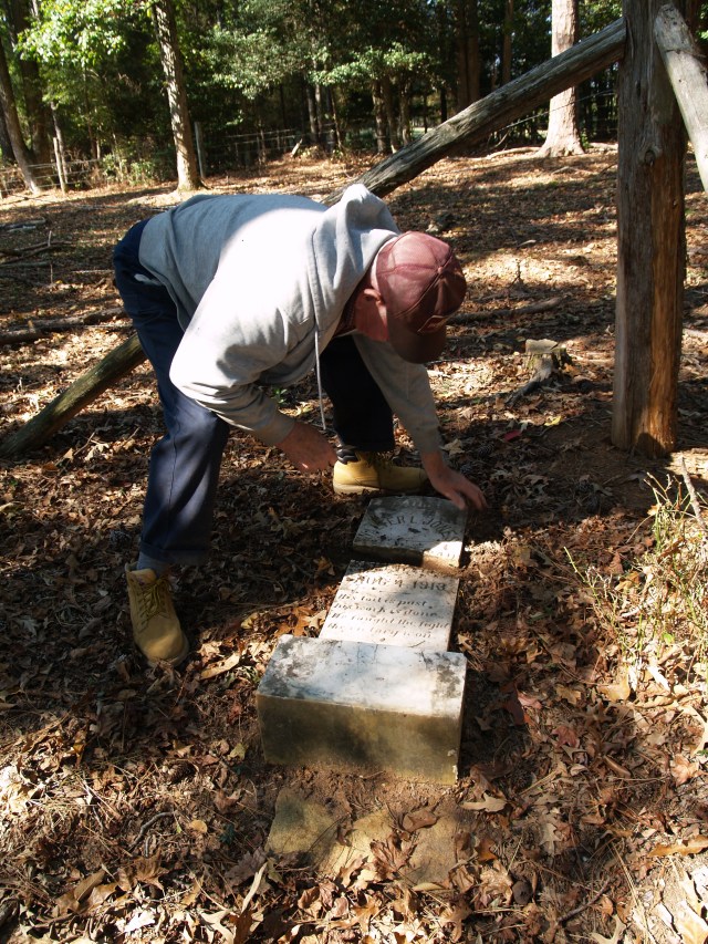 I visited this cemetery with my husband Aaron, 14 Oct 2007. It was behind Lindbergh Tudor’s house, back in the woods. Lindbergh’s home was on Marengo Rd. Lindbergh found this cemetery on his property. He constructed and put up the fence and gate. Sarah and Walters’ tombstones were buried about 2 inches under the dirt, broken. He temporarily set the stones together so I could get pictures. There are some flat, upright stones, but they don’t appear to have ever had writing or carving on the stones. Lindbergh and I estimated about 14 graves with field stones. It looked like there were two rows of burials. Maybe three rows for part of the cemetery.