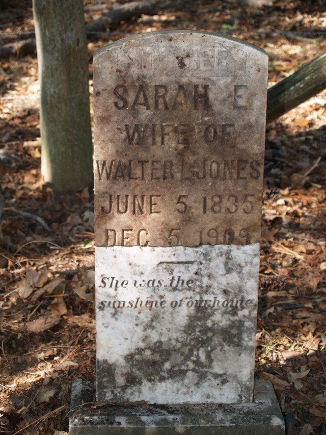 This land adjoined a farm that before 1900 was a Baisey farm. Sarah Walker, who is buried in this cemetery was an heir of John Baisey. I do not yet know if this cemetery is the same one mentioned in John Baisey’s estate, or a different cemetery. Still searching for land documentation for: Walter Jones, his wife Sarah Walker & John Baisey.